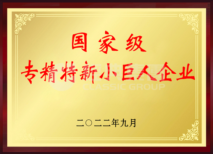 經(jīng)典集團入選第四批國家級專精特新小巨人企業(yè)。