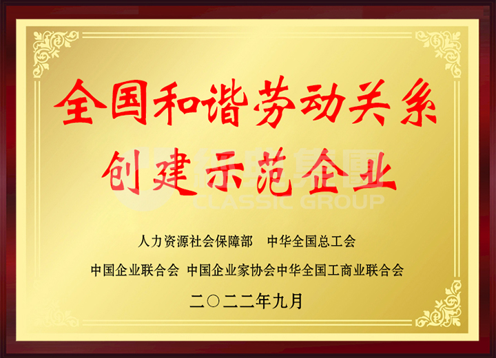 經(jīng)典集團入選全國和諧勞動關系創(chuàng)建示范企業(yè)。