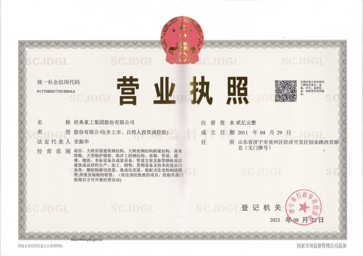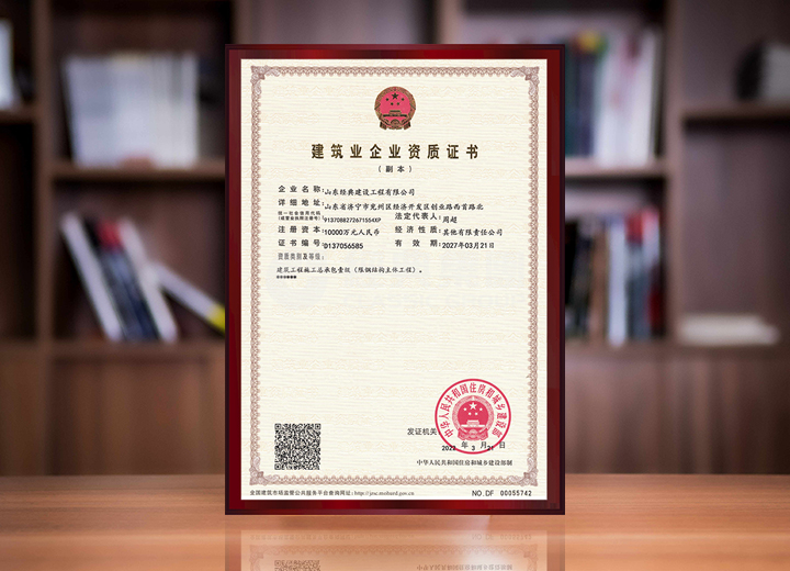 山東經(jīng)典建設工程有限公司榮升建筑工程施工總承包壹級資質。