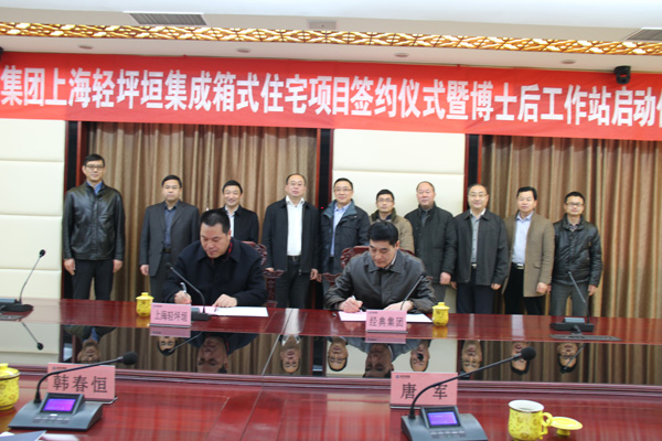 儀式上,經(jīng)典集團與輕坪垣輕鋼房屋技術(shù)有限公司簽署了經(jīng)典集成箱式住宅項目合作協(xié)議,與同濟大學(xué)博士后姚行友簽訂了工作協(xié)議,標志著經(jīng)典集成箱式住宅產(chǎn)學(xué)研合作項目和博士后工作站正式啟動。
