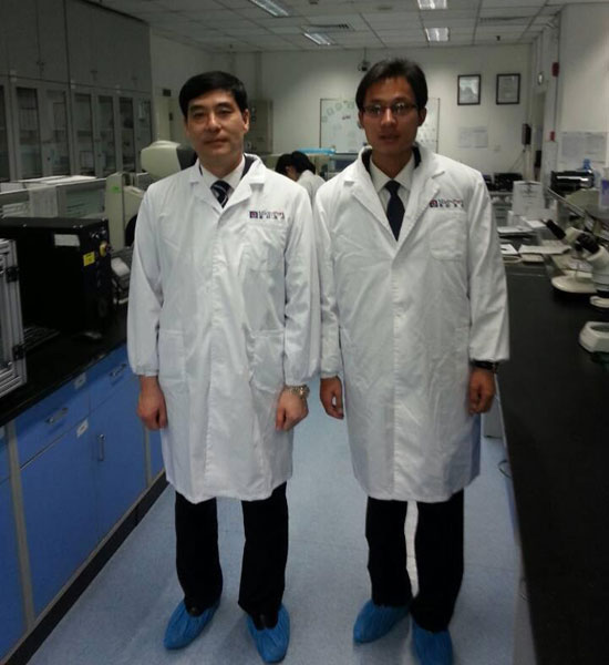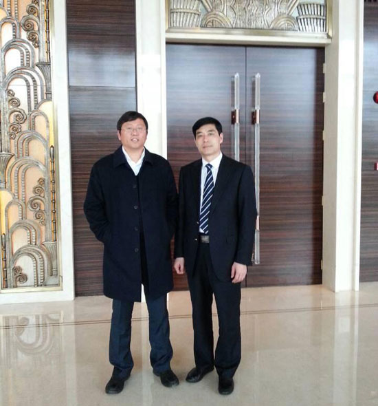 經(jīng)典集團(tuán)董事長苗樹文(右一)與劉道志博士(左一)合影