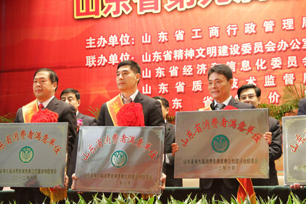 此次活動(dòng)經(jīng)過(guò)消費(fèi)者滿(mǎn)意度調(diào)查、各市初評(píng)、材料審查、省考評(píng)組考評(píng)、征求主管部門(mén)意見(jiàn)、省評(píng)審委員會(huì)審定、社會(huì)公示等流程,由省消協(xié)、省文明辦、省工商局、省質(zhì)監(jiān)局、省衛(wèi)生廳、省物價(jià)局、省總工會(huì)等13個(gè)部門(mén)共同認(rèn)可肯定。該項(xiàng)榮譽(yù)的獲得標(biāo)志著我公司的商品質(zhì)量及服務(wù)水平不僅得到了濟(jì)寧地區(qū)廣大消費(fèi)者的高度認(rèn)可,在省、乃至全國(guó)也具有了一定的知名度。山東省副省長(zhǎng)張建國(guó)同志也指出,消費(fèi)者滿(mǎn)意單位是塊“金字招牌”,是政府、社會(huì)和廣大消費(fèi)者對(duì)誠(chéng)實(shí)守信、依法經(jīng)營(yíng)者的褒獎(jiǎng)與認(rèn)可。