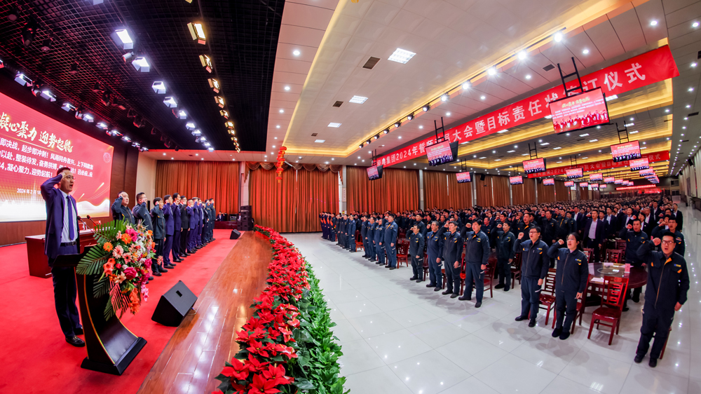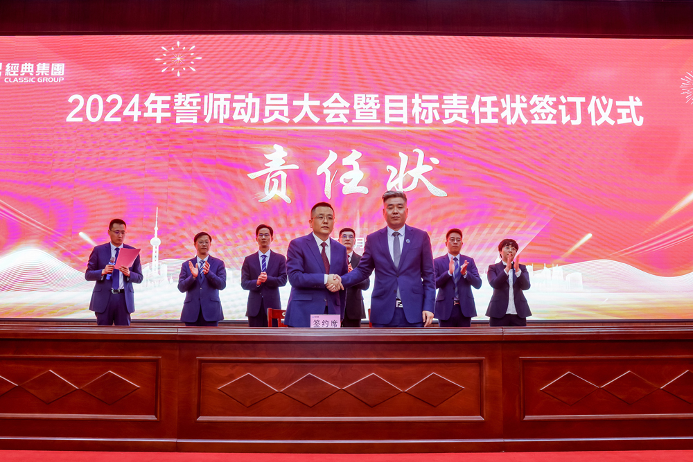團(tuán)結(jié)凝聚力量,奮斗鑄就偉業(yè)。2月18日上午,經(jīng)典集團(tuán)2024年誓師動(dòng)員大會(huì)暨目標(biāo)責(zé)任狀簽訂儀式在職工會(huì)議中心成功召開(kāi),動(dòng)員集團(tuán)各部門(mén)錨定2024年各項(xiàng)目標(biāo)任務(wù),統(tǒng)一思想、凝心聚力,全力以赴抓好落實(shí),確保集團(tuán)高質(zhì)量發(fā)展再上新臺(tái)階。集團(tuán)董事會(huì)、集團(tuán)公司分管負(fù)責(zé)人、各單位負(fù)責(zé)人、工程項(xiàng)目經(jīng)理、各單位職工代表參加了會(huì)議。