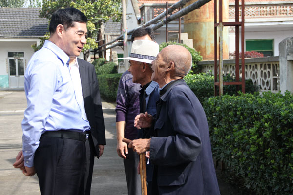在漕河鎮敬老院,初部長和苗董事長一行聽取了有關負責人的情況介紹,與敬老院老人親切握手,了解老人們的飲食起居、身體健康情況,送去了總價值近3萬元的面粉、大米、色拉油、保溫壺、棉被等慰問品,表達了對老人們的節日祝福。