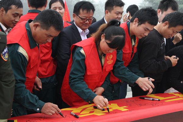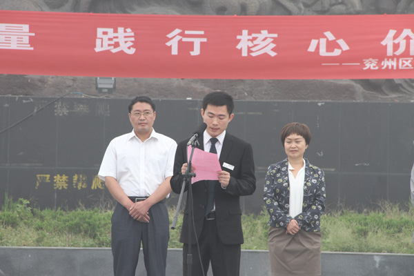儀式由王仁娜副區長主持。區委宣傳部副部長邢衛紅宣讀了《兗州區弘揚社會正能量踐行核心價值觀倡議書》。集團公司志愿者卞中凱作為全區企業屆代表作了表態發言。儀式上頒發了活動宣傳書籍和資料。初建偉部長作了重要講話。活動最后,廣大志愿者們在活動條幅上鄭重簽下了自己的名字。