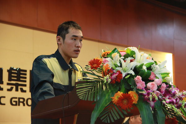 隨后,分條班組的高輝作為新招員工代表作了表態發言。